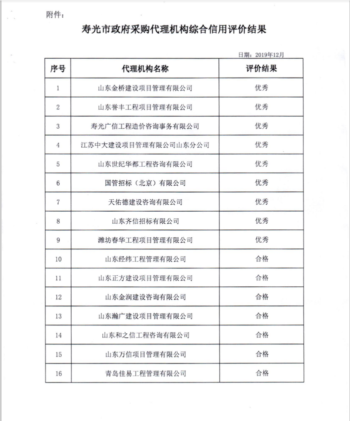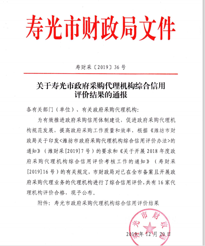 日前,壽光財(cái)政局開展了壽光市政府采購代理機(jī)構(gòu)綜合信用評價(jià)工作,經(jīng)過筆試等評審環(huán)節(jié)后,我公司獲得優(yōu)秀等級。榮譽(yù)的取得既是對公司的肯定,也是對公司的鞭策,我們公司將繼續(xù)秉承齊信公司“好服務(wù),為卓越”的服務(wù)理念,進(jìn)一步提高從業(yè)人員的專業(yè)技能水平,為推動招標(biāo)代理行業(yè)持續(xù)健康發(fā)展做出更大貢獻(xiàn)。