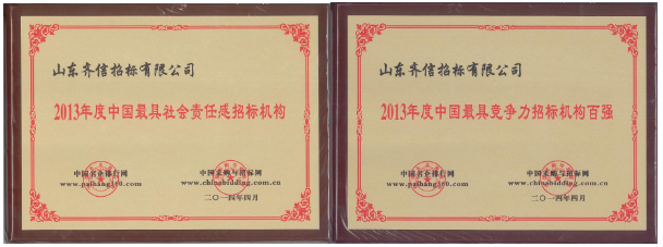 在中國采購與招標(biāo)網(wǎng)與中國名企排行網(wǎng)舉辦的“2014(第八屆)全國招投標(biāo)領(lǐng)域年度聚焦活動(dòng)”評選中,齊信公司連續(xù)第八屆入選“中國最具競爭力招標(biāo)機(jī)構(gòu)”;
