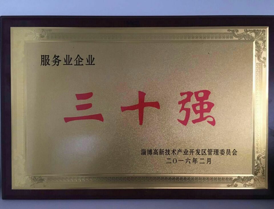 1. 2月15日,山東齊信招標有限公司榮獲淄博高新區“服務業企業三十強”稱號,公司董事長郭培勛榮獲“優秀企業家”稱號,也是唯一獲得此稱號的生產性服務企業。