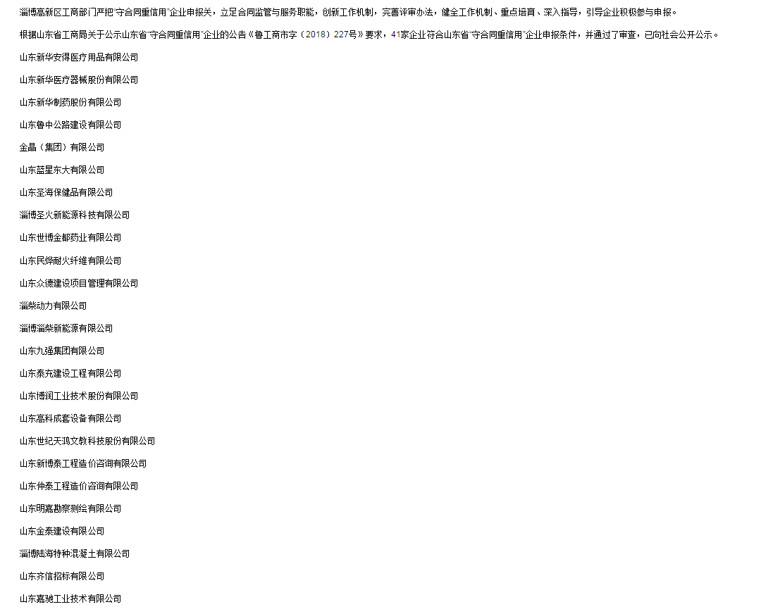 為推進山東企業誠信建設,規范企業合同行為,引導企業誠信履約、守法經營,經山東省工商局嚴格核審,山東齊信招標有限公司等淄博高新區41家企業榮獲省級“守合同重信用”榮譽稱號。